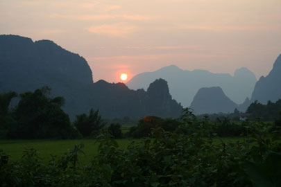 מסלול טיול לצפון לאוס: מוויאנטיין ללואנג פרבאנג נקודת המוצא לטיולנו היא עיר הבירה ויאנטיין (Vietiane). הסיור בעיר כולל בדרך כלל תצפית על נהר המקונג, ביקור בפגודה המופלאה תאט לואנג (Tat Luang), סמלה של לאוס, במקדשים וואט סי סקאט (Wat Si Saket) ו-וואט סי מונג (Wat Si Muang) ובשער הניצחון (Patusai). אפשר גם לנסוע לכיוון גשר הידידות, Friendship Bridge, ובדרך לבקר בשרטונות נהר עליהם ניצבים כפרים. לאחר שחולפים על פני הגשר כדאי להמשיך לפארק הבודהא, שבו פזורים פסלים רבים של בודהא. אם הגעתם לוויאנטיין בתקופת פסטיבל טאט לואנג (הירח המלא בחודש נובמבר) תוכלו לחזות בתהלוכה ענקית של נזירים. מוויאנטיין נצא צפונה אל ואנג ויין (Vang Vieng), נסיעה של 160 ק"מ, כשלוש שעות על דרך מס' 13. נוסעים בבקעת Nam Ngum צפונה, אל Phonhong, ומשם עולים אל הרמה שם נמצא הכפר ואנג ויין (בדרך כדאי לעצור בכפר הדייגים Tha Heua). האזור מזכיר מעט את חבל גווילין שבסין. כדאי מאוד להגיע לואנג ויינג לקראת שקיעה ולהתמקם במלון המקסים Villa Nam Somg שליד מעגן הסירות (אתר אינטנרט). ואנג וויינג אינו רק תחנה בדרך, אלא מקום שנוסעים אליו כדי לשהות בו. יש שם נופים יפים ואפשרוית רבות לטיולים. בבוקר כדאי לנסוע לשוק המקומי, חמישה קילומטרים מצפון לכפר. לצעירים וצעירים ברוחם, מומלץ לצאת לשיט קייקים או אבובים. כדאי גם לבקר במערת Tham Cheng, הסיור נמשך כשעה וחצי, והמערה עצמה איננה מדהימה, אבל הנוף הנשקף ממנה מצדיק בהחלט את הביקור. ליד המערה יש בריכה טבעית שאפשר לרחוץ בה. באזור אפשרויות נוספות לטיולים רגליים במערות.  ואנג ויין. נופים המזכירים את חבל גווילין בסין | צילום: אייסטוק ממשיכים צפונה בכביש 13 לעבר לואנג פרבאנג (Luang Prabang). הדרך מרשימה מאוד ועוברת בנוף הררי יפהפה. הנסיעה נמשכת כשבע שעות, כולל עצירה לארוחת צהרים בדרך. לואנג פרבאנג היא עיירה קסומה עם ארכיטקטורה יוצאת דופן, נוף מרהיב של נהר המקונג, מפלי מים מרשימים ועוד. ביום הראשון בעיירה אפשר לבקר בארמון המלך העתיק המשמש כמוזיאון (סגור בימי שלישי) ולשוט אל המפלים המופלאים של Tad Sea. למחרת כדאי לנסוע למפלי Kuanxii. בדרך יש בריכות טבעיות שאפשר לשכשך בהן. בעונה היבשה אפשר להקיף את המפל בגרם מדרגות. בשל כיוון השמש, המפל יפה יותר בבוקר. הנסיעה נמשכת שעתיים, כולל עצירה בכפרים של בני השבטים מונג ולאו לום.  רחיצת פילים במפלי טאד סי ליד לואנג פרבאנג | צילום: jmbaud74, flickr
