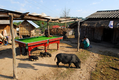 "גוווווווול!" שאג שדר הספורט כאשר נבחרת איטליה הבקיעה את שער הניצחון על צרפת בגמר מונדיאל 2006. בין מאות מיליוני הצופים שישבו מרותקים למסכי הטלוויזיה בכל רחבי העולם היתה גם משפחה בת שבע נפשות בכפר קטן בשם מואנג לו (Mouang lu) שנמצא בצפון-מערב לאוס. מכשיר הטלוויזיה בביתם פעל באמצעות גנרטור קטן שנמצא מתחת לבית. בדומה לרוב הכפרים ההרריים והמרוחקים בלאוס, גם בכפר מואנג לו אין חשמל וגם לא מים זורמים או שירותים בתוך הבתים. אבל טלוויזיה כבר יש, אחת ויחידה בכל הכפר, והיא נמצאת בביתו של הונג ספו, שהיה עד לא מזמן ראש הכפר. בזכות קשריו הטובים עם גורמים שונים מחוץ לכפר הוא גם זה שזוכה לארח מדי פעם תיירים כמוני המעוניינים לחוות לינה בבית מקומי (home stay). בני המשפחה ישבו על הרצפה והביטו מרוכזים במרקע הכחלחל. חלל הבית היה מואר באור נרות קלוש. העשן שהיתמר מהם נמזג בזה שעלה מהכיריים הפתוחים שעמדו בקצה השני של החדר, באזור המשמש מטבח. בתום המשחק שידר הערוץ התאילנדי (הפופולרי ביותר בלאוס) כמה סרטוני פרסומת המציעים להתחבר לחשבון מקוון דרך האינטרנט או לקנות חבילת נופש של מלון וטיסה לאירופה. נראה שמשפחתו של הונג היא לא בדיוק קהל היעד שאליו התכוונו המפרסמים. הסתכלתי בבית הבנוי כולו מעץ ומבמבוק, נשען על כלונסאות. מתחת לבית לעסו את מזונם בשלווה גמורה חזירים, תרנגולות ותאו אחד; מעל לבית הבהיקה באור הירח צלחת הלוויין – המחשה מעניינת להגדרת המושג "גלובליזציה" על פי אנתוני גידנס, אחד המומחים העולמיים בתחום הסוציולוגיה: "העצמתם של קשרים חברתיים חובקי עולם המחברים בין מקומות רחוקים זה מזה, באופן שאירועים ממרחק של קילומטרים רבים מעצבים התרחשויות מקומיות, ולהפך". התפוח הגדול של לאוס