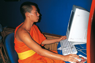 | "לך, שבאת מארץ מערבית, לימודים הם דבר מובן מאליו. אני, כדי ללמוד, הייתי צריך להיעשות נזיר. קוראים לנו נוֹביס, ילדים־נערים שהם נזירים. כשהייתי ילד, הייתי מביט באבא שלי ובדודים שלי חורשים את שדה האורז, ואמרתי לעצמי שאני לא רוצה חיים כאלה. שאני רוצה לצאת מהכפר הקטן שלנו, שאין בו מים זורמים או חשמל. שאני רוצה להיות אדם חשוב, מלומד. בכפר שלנו יש בית ספר יסודי בחינם, וזהו. תיכון יש רק בעיר הגדולה, ורק משפחות עם הרבה כסף יכולות לשלוח לשם את הילדים. אנחנו עניים מאוד, אבל רציתי ללמוד. לכן הפכתי לנזיר. המגורים במנזר והלימודים בבית הספר הבודהיסטי של הנזירים בלואנג פרה־באנג הם בחינם. כנזירים מתלמדים לא חלות עלינו כל 227 המצוות שחלות על הנזירים הבוגרים. אבל מאלה שכן, יש אחת קשה במיוחד: אסור לנו לאכול אחרי השעה 12:00. זה הדבר שהיה לי הכי קשה להתרגל אליו כשהצטרפתי למנזר. "אני לומד קשה כדי לעבור את מבחני הכניסה לאוניברסיטה ולקבל מלגת לימודים. אני חושב שכשאקבל מלגה ממשלתית, אעזוב את המנזר. אני לא בטוח שאני רוצה להמשיך בחיים הנזיריים. זה קשה לי. את החברים שלי בכפר מעסיקים דברים אחרים, הם מתאהבים בבנות. זה כל כך רחוק ממני. אני שמח שבאים לכאן תיירים. אני יודע שאתם סקרנים, ולי חשוב לשפר את האנגלית שלי. אז ככה יש לי הזדמנות להתאמן. עכשיו יש לי חברים מכל העולם, ואני בקשר איתם. כשהתחלתם לבוא לכאן, פתחו עבורכם אינטרנט־קפה. למדתי להשתמש במחשב ופתחתי תא, כמוכם, ב־hotmail. אני יכול להתכתב גם איתך?". |