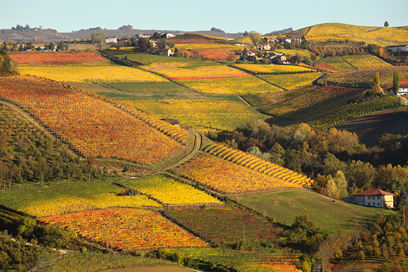 כרמים באזור חבל פיימונטה, היפה במיוחד בסתיו