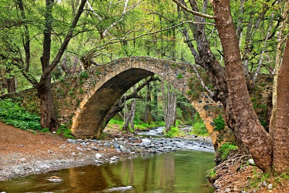 גשר ונציאני עתיק בהרי הטרודוס. מפלט נעים מהמולת החוף
