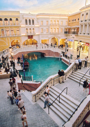 שדרת החנויות במלון Venetian. המלון בנוי בסגנון הרנסאנס ובהשראת ונציה. לא פסחו כאן על התעלות ועל הגונדולות הטיפוסיות לעיר צילום: באדיבות אם.ג'י.אם מיראז' (MGM Mirage) |