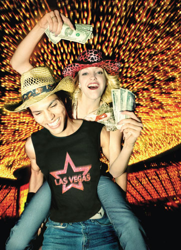 זוג בקזינו בלאס וגאס. הססמה המלווה עכשיו את קמפיין התיירות של העיר היא: "מה שקורה בווגאס נשאר בווגאס". המסר הוא: תרגישו חופשיים לעשות כל מה שעולה על רוחכם צילום: אימג'בנק ישראל |