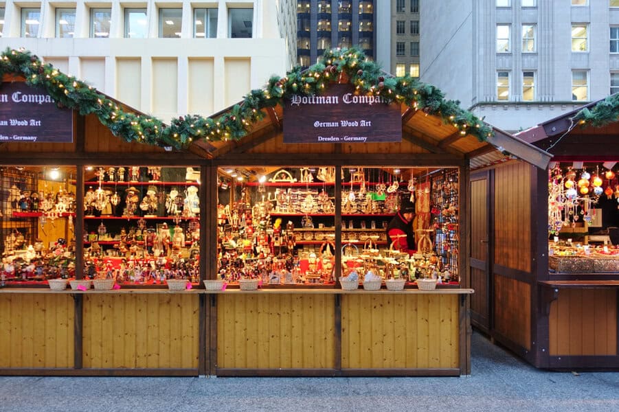 בעוד שניו יורק היא העיר האמריקאית המזוהה יותר מכל עם חג המולד, השוק המפורסם והגדול ביותר בארצות הברית נמצא בשיקגו. השוק, Christkindlmarket, הוא שוק בסגנון גרמני שפועל במשך חודש שלם בכיכר Daley במרכז העיר וכולל הופעות מוזיקליות, דוכני מתנות ומזכרות ודוכני מזון. תוכלו לשוטט בין דוכני עץ ולשתות שוקו חם או יין חם שמיובא מגרמניה, לאכול ראקלט עם גבינה שוויצרית מומסת או פרעצל ממולא, לקנח באגוזים קלויים בניחוח מתקתק ועוגיות ג'ינג'ר ולקנות מתנות מתוקות כמו קישוטי זכוכית, שעוני קוקיה וכפפות סרוגות ביד. יש גם תהלוכת עששיות, סדנאות יצירה ופעילויות מיוחדות לילדים.