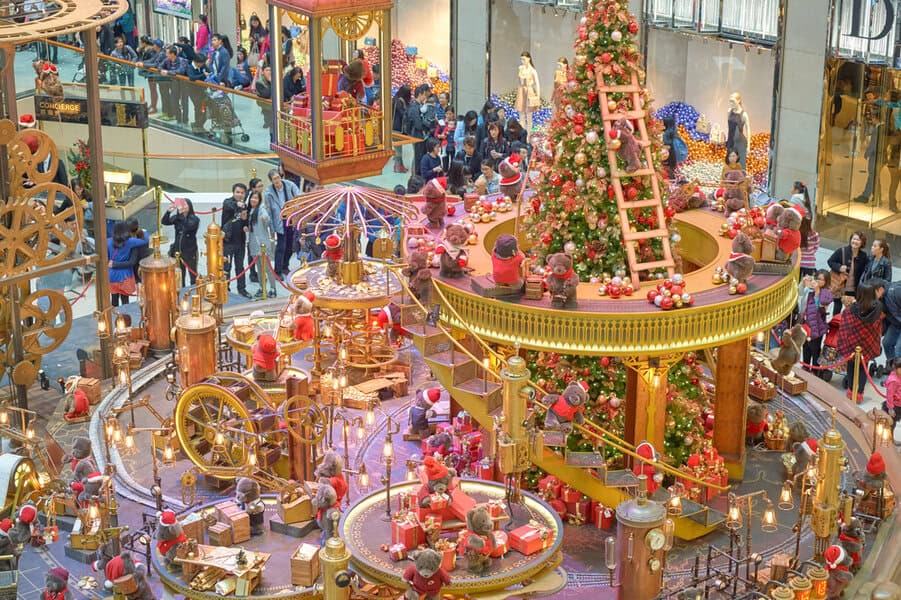 הקניונים בהונג קונג מקושטים ומעוצבים באופן מיוחד לקראת החג | צילום: Sorbis / Shutterstock.com