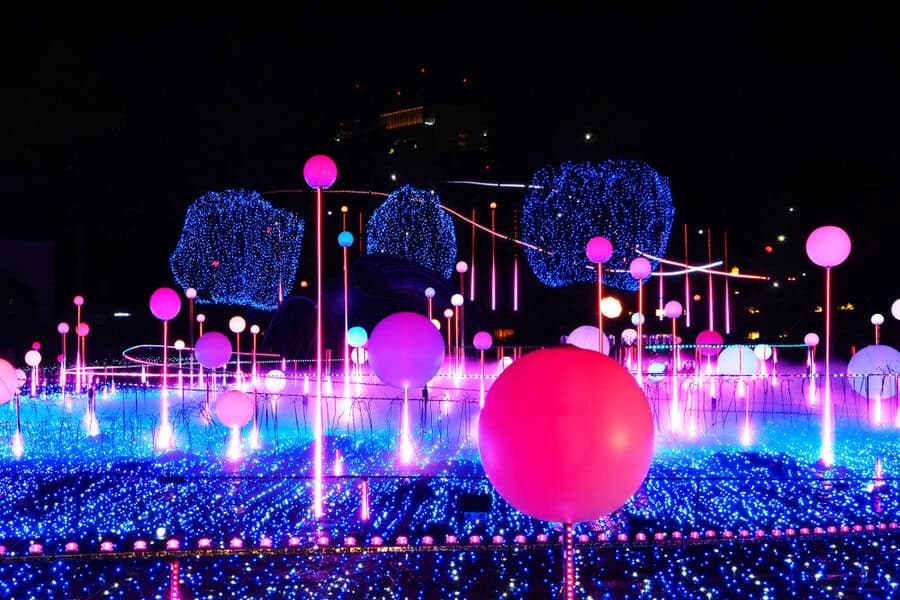 ביפן, שמרבית אוכלוסייתה בודהיסטית, אמנם לא חוגגים באופן רשמי את חג המולד, אבל גם אם לא תשמעו כאן מזמורי חג ולא תראו דמויות של קדושים נוצריים בשווקים, ביפן אימצו כמה מהמסורות האסתטיות של חג המולד – ובהן קישוטי החג והתאורה המיוחדת, ומביאים אותן לידי שלמות כמו שרק ביפן יודעים לעשות. לקראת חג המולד אזורים רבים בטוקיו מוארים בתאורה מרשימה. רחוב מארונוצ'י ( Marunouchi) שנמתח לאורך 1.2 ק"מ יש 280 עצים המוארים ב-820 אלף נורות לד בצבע שמפניה, ואילו רחוב Keyakizaka מואר ב-800 אלף נורות לד בצבעי כחול ולבן. ברחבי טוקיו יש עוד הרבה שכונות, פארקים וגנים ומבני ציבור שמוארים בתאורה מיוחדת לחג. תאורה ססגונית במיוחד תראו בפארק השעשועים Yomiuri Land, המואר במיליוני נורות לד צבעוניות. בשעות הערב מתקיים בפארק מופע מזרקות מרהיב. את תצוגת האורות המרשימה מכולן תראו רחוק יותר, בפארק השעשועים Nabana no Sato שליד נגויה. מדי חורף (ולא רק בתקופת חג המולד), הפארק מואר בלמעלה מ-5.8 מיליון נורות לד צבעוניות ומיצגי אור של הרים, מפלים, דמויות מהאגדות ועוד בין גני הפרחים של הפארק.