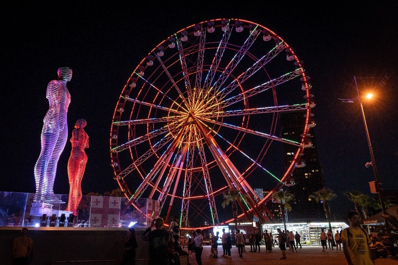 הגלגל הענק – דרך כיפית נוספת לצפות בנוף המרהיב של בטומי מלמעלה. הגלגל מיועד למשפחות ולילדים קטנים ומסתובב לאט. מומלץ להגיע גם בלילה, אז הגלגל הענק מואר והעיר כולה מוארת.