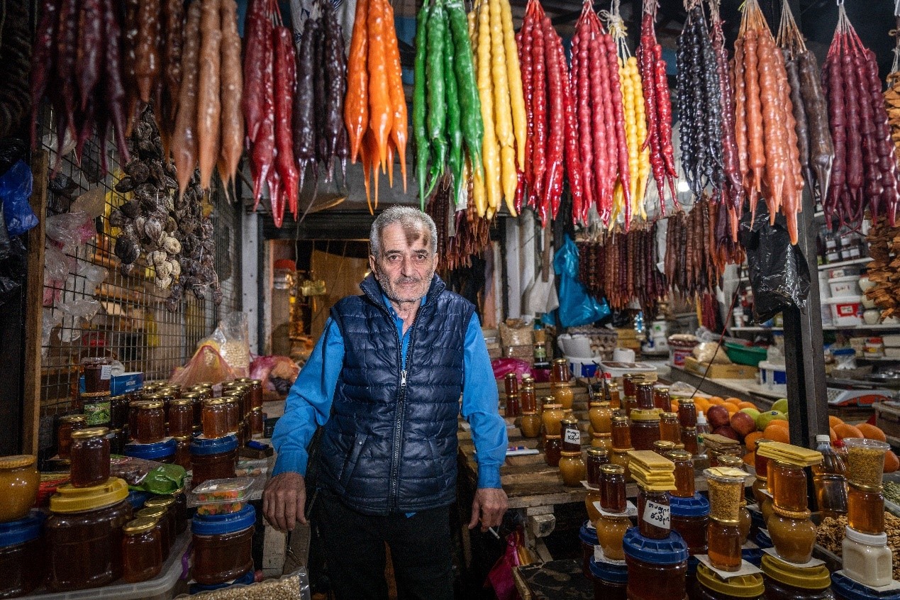 הקו המרכזי של הארוחות היה לא רק פחמימות למיניהן, אלא גם… אגוזים! פגשנו וריאציות שונות של אגוזים בכל ארוחה, בכל טקסטורה ומצב צבירה. בתוך חצילים מגולגלים, כרוטב מעל תבשילים, כעיבוי של מרקים, ככדורים בצבעים שונים ואפילו בתור קינוחים – כשהם מצופים סוכר פירות ונקראים – צ'ורצ'חלה.