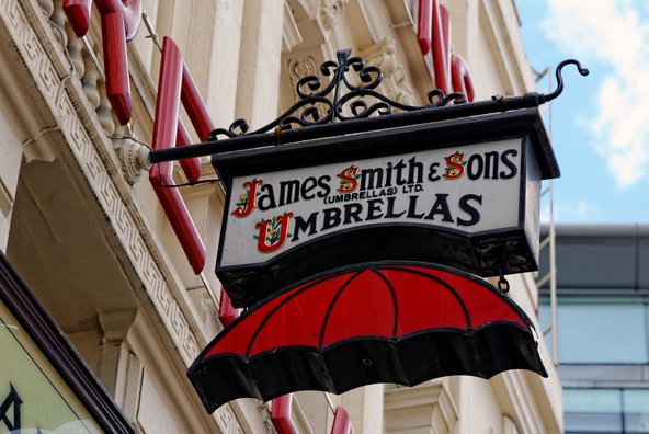 לונדון כל כך נהדרת, שבאמת חבל לתת לקצת גשם להרוס לכם את החופשה. במקום זאת הצטיידו במטרייה טובה וצאו לחרוש את העיר. חנות המטריות של ג'יימס סמית ובניו (James Smith & Sons) פועלת מאז 1830. תוכלו למצוא כאן מטריות טובות וחזקות בסגנון של פעם, לא כאלה שצריך להשליך לפח אחרי הגשם הראשון. כתובת: Hazelwood House, 53 New Oxford Street