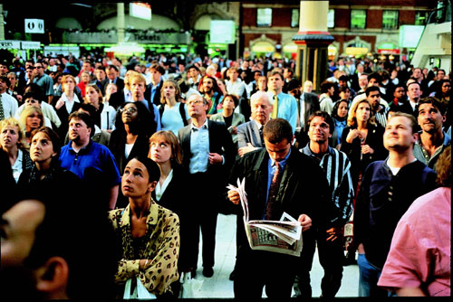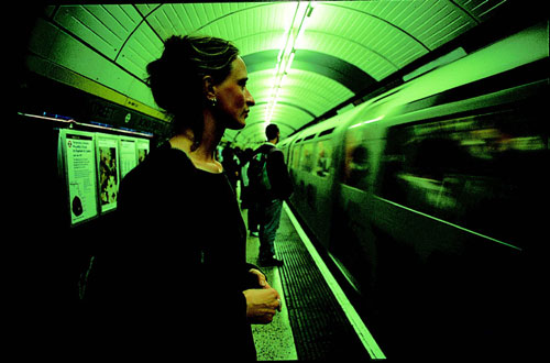 לברביקן). תווי החומה הכתיב את דגם הרחובות במייל המרובע שבו נמצא היום ה"סיטי של לונדון", וגם היום אפשר לעקוב בנקל אחר תווי החומה והדרכים שיצאו משעריה: רחוב לונדון ווֹל (London Wall) נמצא מצפון־מערב לטאוור (Tower), וממנו נמשכים רחובות נוספים הסוגרים את העיר בחצי קשת; הרחובות הניצבים לחומה מנציחים בשמותיהם את שערי החומה שמהם יצאו בעבר: ניוגייט (Newgate), בישופסגייט (Bishopsgate), מורגייט (Moorgate) ואחרים. עם הזמן, גדלה חשיבותה של לונדון כעיר נמל פעילה וכמרכז דתי, מסחרי ושלטוני. כל אלה הביאו לצפיפות רבה מאוד של אוכלוסיה ולגיבוב של רחובות צרים, בתי מגורים, בתי מלאכה ועסקים אחרים בתנאי היגיינה מן הגרועים באירופה. נוצר צורך לפרוץ את החומה ולצאת אל המרחבים הפתוחים, בעיקר מצפון. בשלב ראשון החלו להתפתח עשרות כפרים מחוץ לחומה, במרחב הכלול היום בתחומי "לונדון רבתי". תהליך זה נמשך, למעשה, עד היום. מוקדי הצמיחה הראשונים מחוץ לחומה היו היישובים שעל צירי התחבורה הרומיים היבשתיים וכן לאורך התמזה ויובליו. כך, למשל, על הדרך המובילה מלונדון מערבה לעבר העיר באת' (Bath, אקווה סוליס הרומית) התפתחה ווסטמינסטר, שהפכה לימים למקום מגורי המלך. שם נבנתה הכנסייה (כנסיית ווסטמינסטר, הניצבת ליד בתי הפרלמנט), ולשם עברה לגור האצולה האנגלית. הנוף האורבני של לונדון משקף גם היום את ההיסטוריה. באיזור ווסטמינסטר נמצאים בית המלוכה והגנים הנרחבים והיפים שסביבו. שם מצוי המרכז התרבותי של לונדון, ובו הגלריה הלאומית ומספר רב של תיאטראות ובתי קולנוע, וכן מרכזי עסקים וקניות גדולים. בשנת 1078 התגוררו בלונדון 15,000 תושבים. בחלוף כמאה שנה, כאשר נבנתה כנסיית סנט פול בתוך הסיטי, הגיעה אוכלוסייתה של העיר ל־40,000 נפש. במאה ה־14 המשיכה העיר לצמוח ולהתעצם והגיעה לכדי 300,000 תושבים. במגיפה השחורה שפרצה בשנת 1348 נספו כשליש מתושבי לונדון. רק בשנת 1600 חזרה אוכלוסיית לונדון לממדיה מלפני המגיפה. השריפה הגדולה והנמל המודרני בשנת 1666 נפגעה לונדון ממכה נוספת: שריפה גדולה כילתה את כל העיר שבתוך החומות ופגעה גם בחלקים מהעיר שמחוץ לחומות, בדרך לווסטמינסטר, כולל גשר לונדון (שבנייתו החלה בשנת 1176), כנסיית סנט פול ומרבית בתי המגורים. אחת התוצאות של  | | תחנה ברכבת התחתית. קשה להעלות על הדעת תפקוד נאות של עיר כלונדון ללא אמצעי תחבורה זה, המסיע מדי יום מליוני בני אדם |
