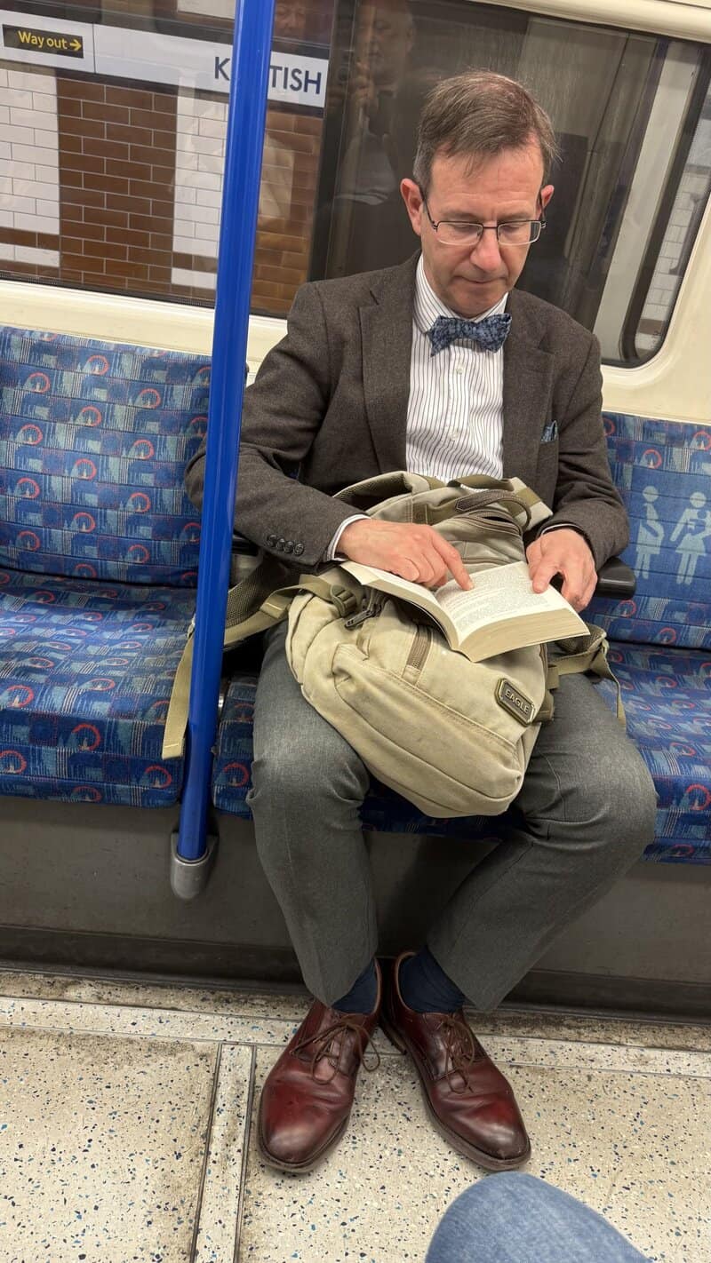 התחתית בלונדון היא הרואית. כאן, נדמה, הכל, כמו פעם: הריחות, הרעידות, הרעשים האדירים, ה"מיינד דה גאפ" והאינטראקציה השקטה והמובנת מאליה בין הנוסעים למושבים. כמה עלילות גדולות מתרחשות בקרונות הללו? תראו את הפרופ' (תואר מומצא)* שישב ממולנו וקרא ספר עב כרס. הוא לא הפסיק לעלעל בדפים ולהצביע באצבעו – מראה מקום(?), גם שהכרוז הודיע שיש תקלה וצריך יהיה להמתין. הזמן נקף והוא נראה לי לפתע כמו גבור ספרותי שחמק מתוך דפיו של ספור ישן מימים של פעם.