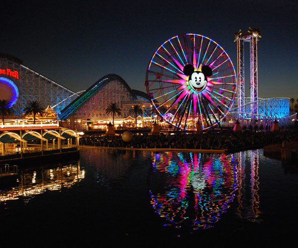 בצמוד לפארק דיסנילנד נמצא פארק ההרפתקה הקליפורנית של דיסני (Disney California Adventure Park), אשר מוקדש, כמשתמע משמו, לקליפורניה ולנופיה, עם העתקים של אתרים במדינת קליפורניה ומתקנים שמציעים, בין היתר, טיסה בדאון מעל גשר שער הזהב ואתרים מפורסמים נוספים או שייט אבובים רטוב בנהר הגריזלי השוצף. אטרקציה בולטת נוספת היא "ארץ המכוניות", ובה מתקנים בהשראת הסרט מכוניות. כדאי להקדיש לכל אחד מן הפארקים יום אחד. מתקן מסחרר בדיסנילנד, הראשון מבין פארקי השעשועים של דיסני