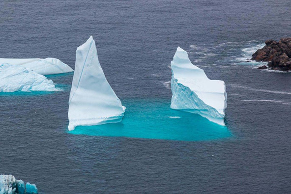 • קרחונים ימיים. גושי קרח שניתקו מהקרחונים היבשתיים, וצפים להם במי הים. רק 10% מהקרחון בולט מעל פני המים, ומתחת להם גודלו יכול להיות עצום. לפעמים קרחונים ימיים יכולים ממש "לסתום" מפרץ, ולפעמים הם יכולים להידמות לארמונות קסומים ששטים באיטיות במים.