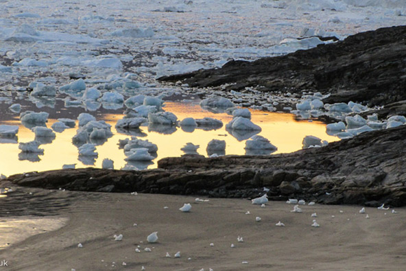 מפרץ גרינלנדי אחרי לילה עמוס ברוחות