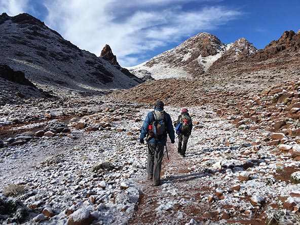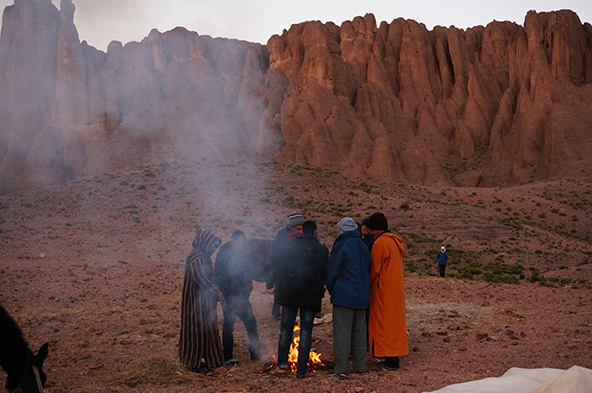 בין הפסגות הגבוהות כלואות בקעות קטנות, "אלאמו" בשפה הברברית המקומית, שבהן נוצר מרעה איכותי בזמן החורף. לכל משפחת נוודים יש את המרחב שלה, שכן אין המון שטח לחלוק אותו וחשוב לשמור על מרחק גדול בין המאהלים השונים, על מנת שלא יתפתח סכסוך על חלקות הקרקע. כשאני שואל את חסן, הנווד שבסמוך למאהל שלו אנחנו ישנים בלילה הראשון לטרק, אם אין ויכוחים בין הנוודים על מעט המרעה הטוב, הוא אומר שבוודאי שיש, אבל המלחמות האלו נגמרו כבר לפני הרבה שנים ומאז כולם שומרים על הסדר. אני שואל אותו מתי הן היו, הוא מסתכל עלי מופתע מהשאלה, ועונה "אמרתי לך… פעם!". אני לא מתיימר להבין באמת את הקודים המקומיים, אבל זה מזכיר לי ששנה לפני כן שאלתי אותו מה גילו, הוא ענה 60-45 בערך.