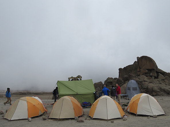 בגובה של כ- 3,450 מטרים הוקמו האוהלים ללינת הלילה השני. ניימן, המדריך המקומי, מוליך אותנו מהמאהל לגובה נוסף של כ-300 מטר, ואז חזרה אל האוהלים. המטרה שנוכל להתאקלם – לשהות באוויר דליל יותר בחמצן, ואז לחזור לשינה בגובה נמוך יותר. עד שהשמש שוקעת האוהלים מתחממים מאוד והופכים למעין סאונות, בלילות המצב מתהפך.
