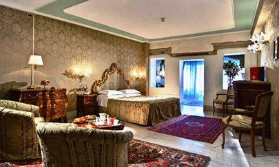 קון: Hotel La Barme מלון כפרי מקסים הממוקם בליבו של הפארק הלאומי גראן פרדיסו ובמרחק שני קילומטרים מהכפר קון. המלון הוא למעשה מקבץ של בתי הרים ישנים ששופצו תוך שמירה על המאפיינים האותנטיים של עץ ואבן. הבתים משתלבים היטב בסביבה ונשקף מהם נוף נהדר של ההרים והעמק. במלון 15 חדרים חמימים וביתיים, המצויידים בטלוויזיה, די.וי.די וטלפון. במקום יש מסעדה שמגישה אוכל מקומי מצוין ולידה גן קטן. אחר יום של טיולים אפשר להירגע בספא שכולל ג'קוזי, סאונה ומגוון טיפולים. בפארק הלאומי גראן פרדיסו יש מגוון מסלולי הליכה ברמות שונות, ובמלון ניתן לשכור אופניים לטיול בסביבה. באזורניתן גם לטפס על הרים, לרכב על סוסים ולדוג. המלון ידידותי במיוחד לילדים ומציע לאורחים הצעירים ארוחות לתינוקות, צעצועים, עגלות, מנשאים, מגרש משחקים, כסא תינוק לאופניים ואפילו סרטי די.וי.די מצויירים. כתובת: Valnontey – 11012 Cogne טלפון: 39-0165-749177 מחיר: החל מ-98 אירו לחדר זוגי ללילה על בסיס חצי פנסיון. מינימום שני לילות. אתר אינטרנט ונציה, ורונה ונציה או ורונה מהוות בסיס טוב לטיולים בצפון איטליה. אפשר להתמקם באחת מהן ולצאת בכל יום לטיול אחר, או לשלב לינה באחת או בשתיהן בטיול ארוך בצפון.  | | אל פונטה אנטיקו. טפטים, שטיחים רכים ורהיטים היאים למשפחת אצולה |
