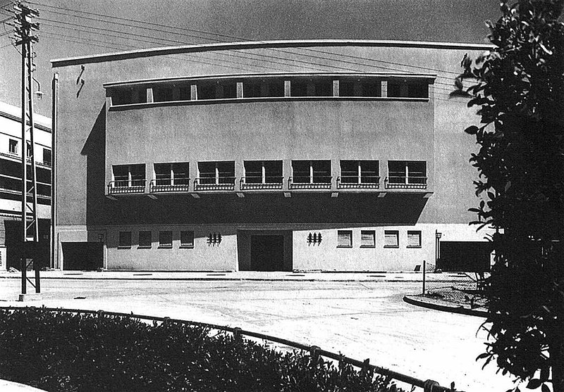 למעלה: המבנה של תיאטרון אהל בתחילת שנות הארבעים; למטה: החזית המשופצת של התיאטרון שהפך למלון בוטיק | צילום תחתון: רותם בר כהן; צילום עליון ברשות נחלת הכלל