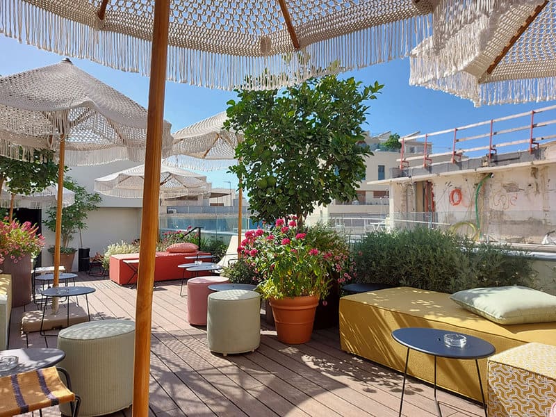 גם אם החדר שלכם לא מצויד במרפסת ואין לו גישה לחצר פנימית, תוכלו לעלות אל מרפסת הגג בקומה הרביעית, להשתרע על אחת הכורסאות המוקפות בצמחייה ולהרהר בשיר שכתב נתן אלתרמן על תל אביב: "היסטוריה אין לה אף כזרת / אין רצינות בה / אין משקל / נכון מאוד, אדון וגברת / לא, אין בה כלום… לא כלום… אבל… / בכל זאת יש בה משהו, / כן, יש בה איזה משהו…/ שכלל עוד לא היה שהוא / והוא כולו שלה שהוא".
