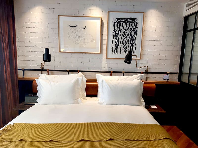 גם בחדרים נשמרה הרוח התיאטרלית, עם מראה מוקפת בנורות, וילונות קטיפה כהים ומתלה מברזל מפורזל לתליית הבגדים. אפילו הדרך אל החדר מזכירה את עברו של הבניין: כשהמעלית נעצרת בקומה המבוקשת נשמעות מחיאות כפיים ובמסדרונות הפתוחים המובילים לחדרים פרושים שטיחים אדומים. על דלת החדר תמצאו גלויה מצוירת עם ציטוט מתוך מחזה (בחדר שלי זה היה ציטוט של איבסן). ואם במקום במעלית תעלו לקומה הראשונה בגרם המדרגות הרחב (והמקורי), תגלו עמדת סלפי בהשראת תאי הצילום של פעם.