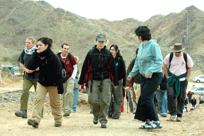 "נפגשים בשביל ישראל", מסע רגלי מאילת לשאר ישוב בחסות ארגון צו פיוס, מאפשר מפגשים עם אנשים מכל גווני הקשת הפוליטית והחברתית על רקע פריחות אביביות פורסם 25.2.10 |