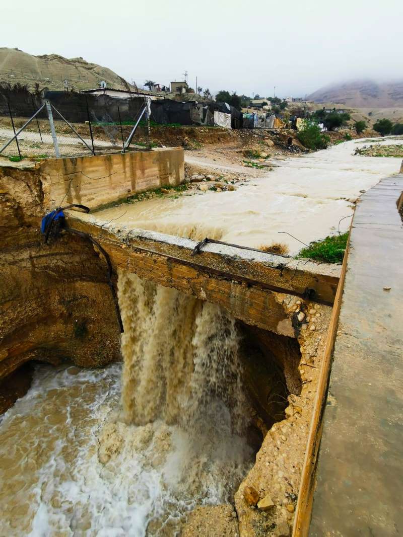 בדרך אל הארמונות עברתי בשכונה של בתי מידות מפוארים, שייתכן ולקחו את השראתם מן הפאר וההדר של ארמון הורדוס. שמעתי רעש מתגלגל של מים זורמים וירדתי בדרך עפר אל גדת הנחל. ואדי קלט זרם בעוצמה ומי השיטפון החומים מסחף כיסו את הדרך ונפלו במפל שוצף מן הגשר ההרוס.