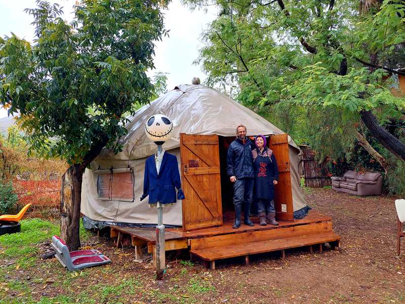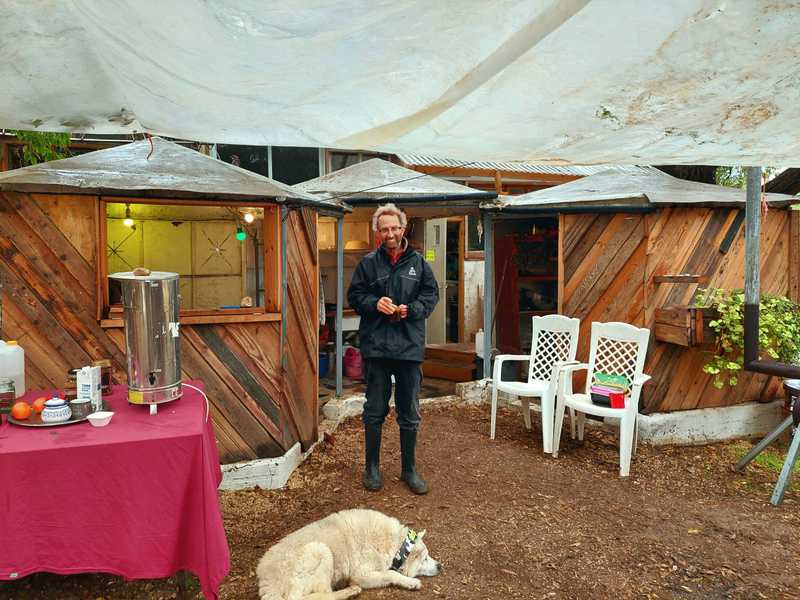 אני מסתובב עם אבנר בחצר החווה בין גבב צבעוני של מבנים מוזרים, כיפות, ברזנטים, בריכות, עמודים. הוא מצביע על כל מקום ודולה עליו סיפור. פינת הזוחלים לשעבר היתה מקורה בגג אדום כמו באגדות, ואבנר החליט שזה יהיה ביתו. האורווה או הדיר או מה שזה, היה מכוסה בשכבת גללים בעובי של חצי מטר, מתחת לקקי התגלתה רצפת בטון. לאט ובנחישות היא נחשפה במלואה, נבנה מטבח, תוקנו חלונות, נפתחה דלת והאולם הפך לחדר האוכל הקהילתי. בימות החורף דולק כאן קמין ביתי מדוד שמש לשעבר ומפיץ חום בגוף ובנשמה.