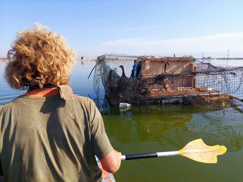 עמרם הצביע על איים צפים באגם והוסיף "אהובי בנה את כל האיים, מארגזים, קלקרים, בקבוקי מים ריקים, וחבלים ארוכים שמרחיקים אותם מהגדה. תנים לא יוכלו להגיע אליהם. יש לו סירה וככה הוא מגיע לאיים לטפל באווזים"