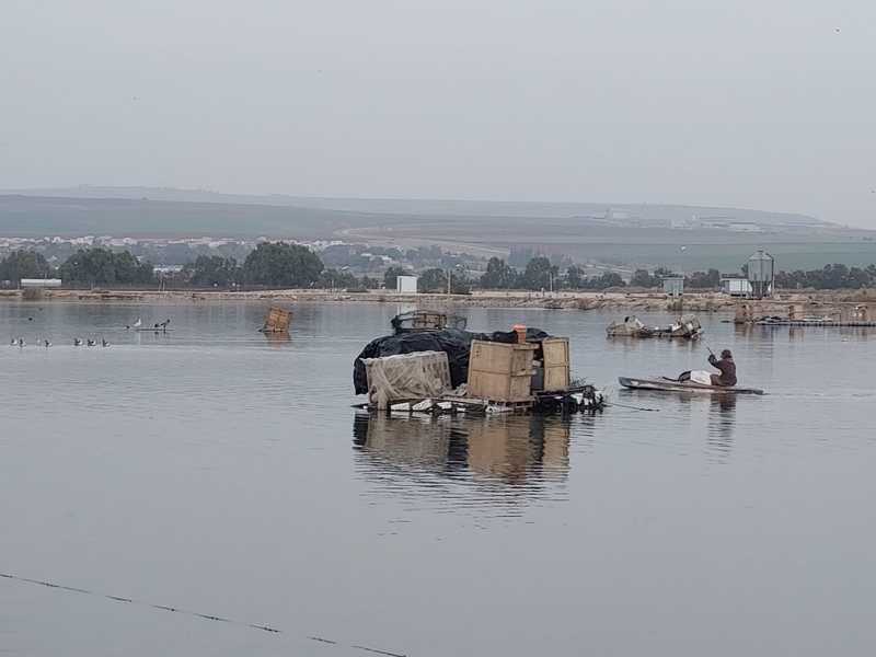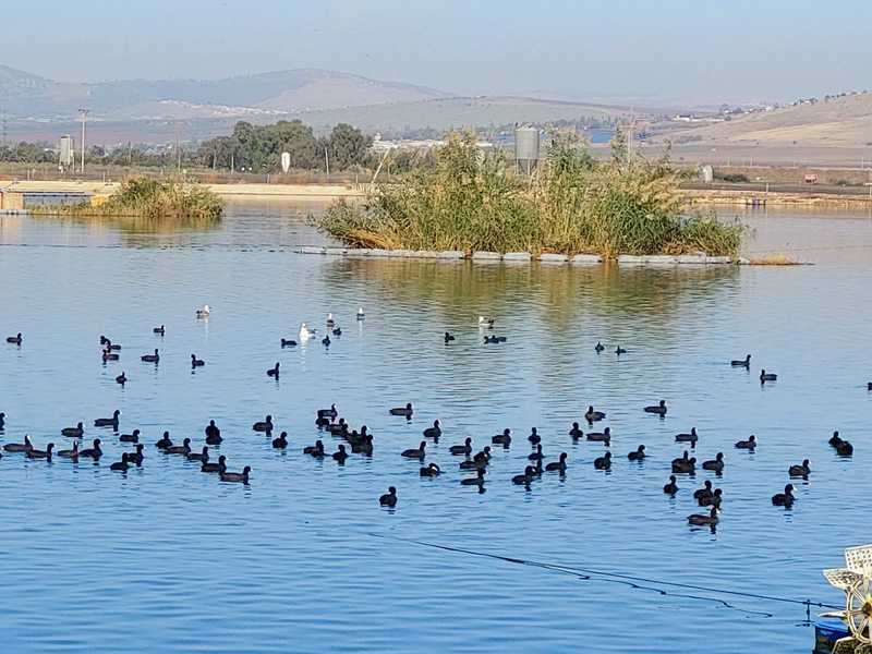 להקה גדולה של אגמיות שחורות עם מקורים לבנים שוחה בבריכה. שלך, דורס ימי, עומד על עמוד וממתין לשעת כושר לעוט על דג שמן. עיט ערבות צהוב מקור ענק יושב גבוה על אקליפטוס ומחריד משלוותם את הציפורים האחרות. שקנאים טסים ממעל במבנה מסודר כמו הרקולסים, ומאתגרים את אנשי המדגה שמזדרזים לגרש אותם, לבל יצודו להם דגים.