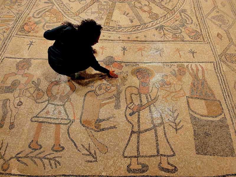 ביקרתי בבית הכנסת העתיק של בית אלפא מהתקופה הביזנטית שהתגלה בקיבוץ חפציבה. שקמה, מנהלת האתר, פתחה לי את מנעול השער והזמינה אותי להתהלך יחף על רצפת הפסיפס. חשתי בהתרגשות את המגע הקריר של אבנים צבעוניות בנות אלף וחמש מאות שנים. בחנתי מקרוב את עבודת האמנות של גלגל המזלות והתפעלתי מסצנת עקידת יצחק המתוארת בציור נאיבי. יצחק הנער, ומעליו רוכן אברהם האב המאמין הקנאי שמניף את חרבו ומוכן להקריב את בנו לאלוהים. אולי היתה זו אהבת האם שרה שאינה בתמונה שריככה את הלב האלוהי וגרמה לו לשלוח את ידו אל אימרת הפסיפס ולצעוק בכתב מחובר על אברהם "אלתשלח". משמאל הגיח "והנה האייל" ובגרונו מושיע את הנער. הסגנון האמנותי הילדותי אינו מחפה על הסיפור הנוראי של הקרבת הבנים.