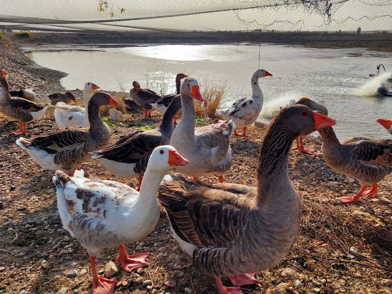 מרחוק ראיתי מישהו הולך בין הבריכות, הבטתי במשקפת, זה היה אהובי. "חשבתי שזה אתה" אמר לי כשהתקרבתי "בוא איתי נשוט בקייאק לפגוש את האווזים" התיישבתי מאחור ואהובי ישב מקדימה עם המשוט וחתר במים השקטים. היה ניגוד משעשע בין הלוחות הסולריים מפיקי החשמל שצפו על פני הבריכה, לבין האיים שאליהם חתרנו שנראו כמו ערימות של גרוטאות. בערך כמו ההבדל בין איש האווזים לאיש הייטק למשל.