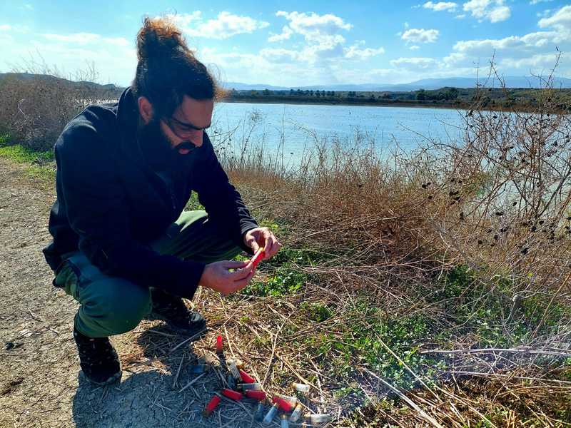 במהלך השנים האחרונות אופיר חילץ מהבריכות עשרות שקנאים, אנפות, דורסים ועופות אחרים שנפגעו בעיקר מיריות אבל גם בהיתקלות בקווי מתח גבוה הסתבכות ברשתות ושקיעה בבוץ. אופיר ביקש לעצור רגע את הרכב. הוא ניגש לצד השביל והרים תרמילים של כדורי ציד. "יש פה שבעה עשר כדורים שנורו מרובה ציד" הוא אמר בזעם "שניים בלבד הם כדורי אלפגע, השאר הם כדורי ציד שמכילים עשרות כדוריות נחושת שהורגים או פוצעים ציפורים. טיפלתי כבר בעשרות שקנאים שריססו אותם בכדורים שכאלו, והנה פה למטה אנחנו רואים את התוצאות" הוא הצביע על פגרים בשולי הבריכה.