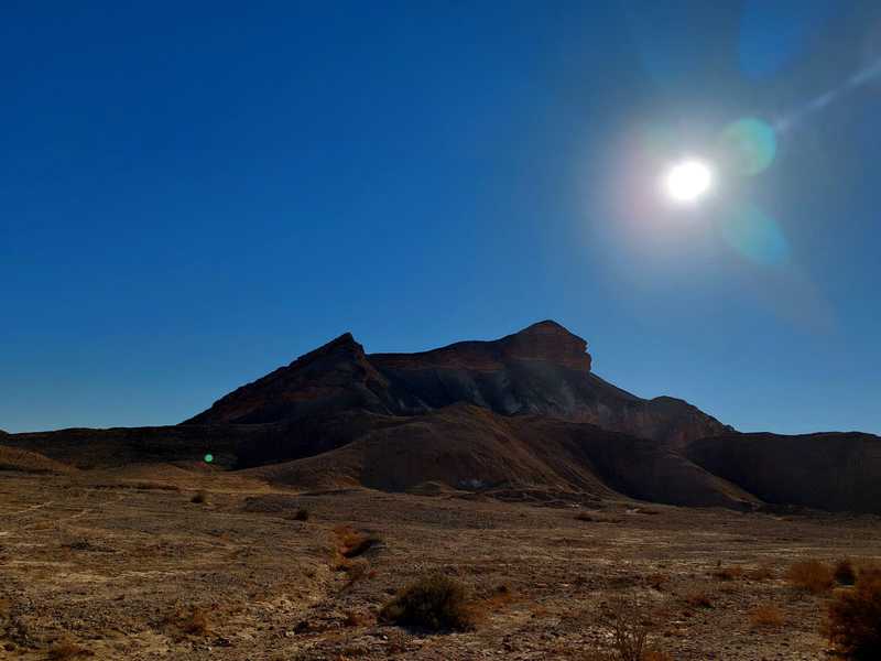 פסגת הרכס היתה מקום נעים לצעוד בו, והתצפיות לכל עבר היו של מדבר יפה ואינסופי. לאחר כשעתיים ירדתי בדרך אחרת קלה יותר והלכתי למרגלות ההר בחזרה אל הרכב. באחד מהנקיקים שירדו מן ההר הבחנתי בברזלי זווית נעוצים בקרקע, שקיות פלסטיק שחורות ומיכל מים גדול וריק. שיערתי שנערך שם טקס צבאי כלשהו ותהיתי למה לא פינו את השאריות משם.