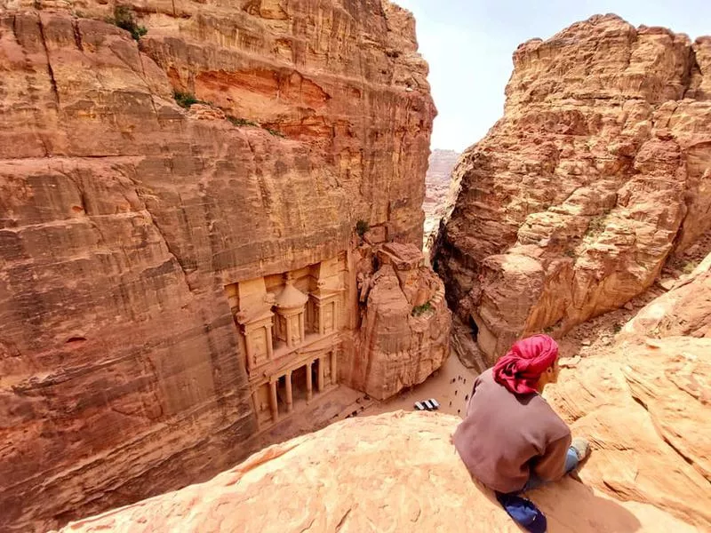 הנבטים חצבו באבן החול האדומה נקרופוליס, עיר של מתים. פטרה בשבילי היא לבירינת מרתק של נקיקים ושבילים נסתרים שההליכה בהם מובילה להפתעות. יצאנו מן הדרך הראשית והגענו למערה חצובה באבן חול בה התגוררה משפחה בדואית. "פעם זה היה קבר, היום אנחנו גרים כאן, מבסוטים" אמר לנו הגבר בחיוך רחב. האישה הכינה לנו תה. אחר כך הוא סיפר לנו על מעיין והראה לנו את הדרך אליו. הלכנו בנקיק צר עם קירות אבן חול גבוהים, בין בוסתנים עם שפע עצי פרי. הגענו אל בריכות מים שופעות שירדנו להשתכשך בהן. לזה אני קורא נווה מדבר… החיים הטובים סטייל ג'ורדן.
