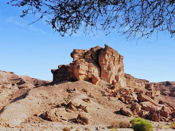 בקצה העליה התחתר הקניון עד לאוכף הררי. שם עצרתי למנוחה, הורדתי את התרמיל והתיישבתי על הסלעים. אני לבד בעולם מול הנוף. אפיק נחל פארן הרחב השתרע בין צוקים, והיה מנוקד בנקודות ירוקות של עצי שיטה טובי מראה. האופק במערב היה בהיר והר כרכום ניצב ברור מעל הכל. יש האומרים שהוא הר סיני ושם ניתנה התורה לבני ישראל. אני נשמתי עמוקות את אוויר המדבר הקריר, וראיתי שם באופק תמונה מאירת פנים של החיים החדשים שלי.