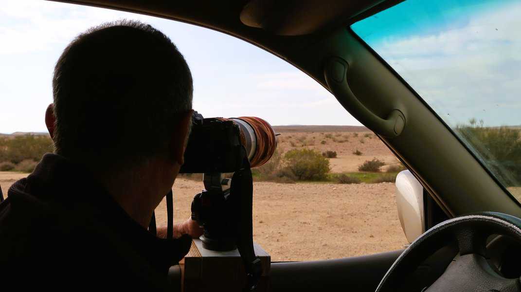 ביום שישי בשבע בבוקר כבר שתינו ביחד קפה שחור בגינת הקרוואן סביב השולחן הקטן ופנינו אל המדבר. תחושה חמימה של תחילת ספארי כמו פעם אפפה אותנו. סיימנו את הקפה, עלינו לג'יפ המדוגם של אייל, הוא ליד ההגה, אני בתפקיד הצופה לידו, וטל הדירה את עצמה למושב האחורי ברוח הימים האלו. יצאנו לשטח וכיוונתי את אייל אל גדת נחל ניצנה, למקום בו עקבתי אחר חוברה יומיים לפני כן. שמש חורפית מהולה בצינת בוקר, ואוויר צלול ונפלא, ליוו אותנו והמתינו בסבלנות מדברית לצילומים.