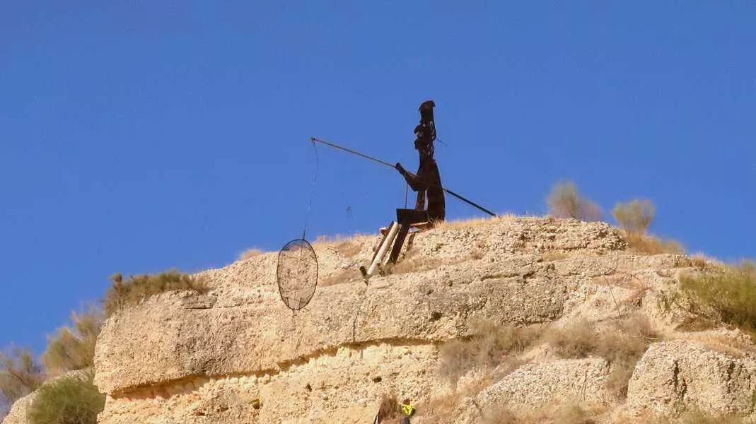 על מורדות הגולן בואכה ים כנרת, מעט צפונה מקיבוץ עין גב, יושב דייג של ברזל על צוק, חכה בידו והוא משקיף אל נוף האגם המרהיב. חדי העין יכולים להבחין שבקצה החוט לכד הדייג את אגם הכנרת