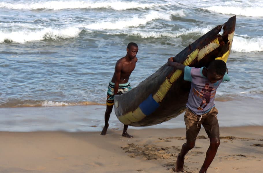 מעבר לתעלה, נמצא כפר דייגים ומעבר לו, גליו המשתברים של האוקיינוס ההודי. שם ראינו סילון קיטור של לוויתן ודייגים שנישאו בסירותיהם על הגלים, כאילו עולים מתוך הקצף.