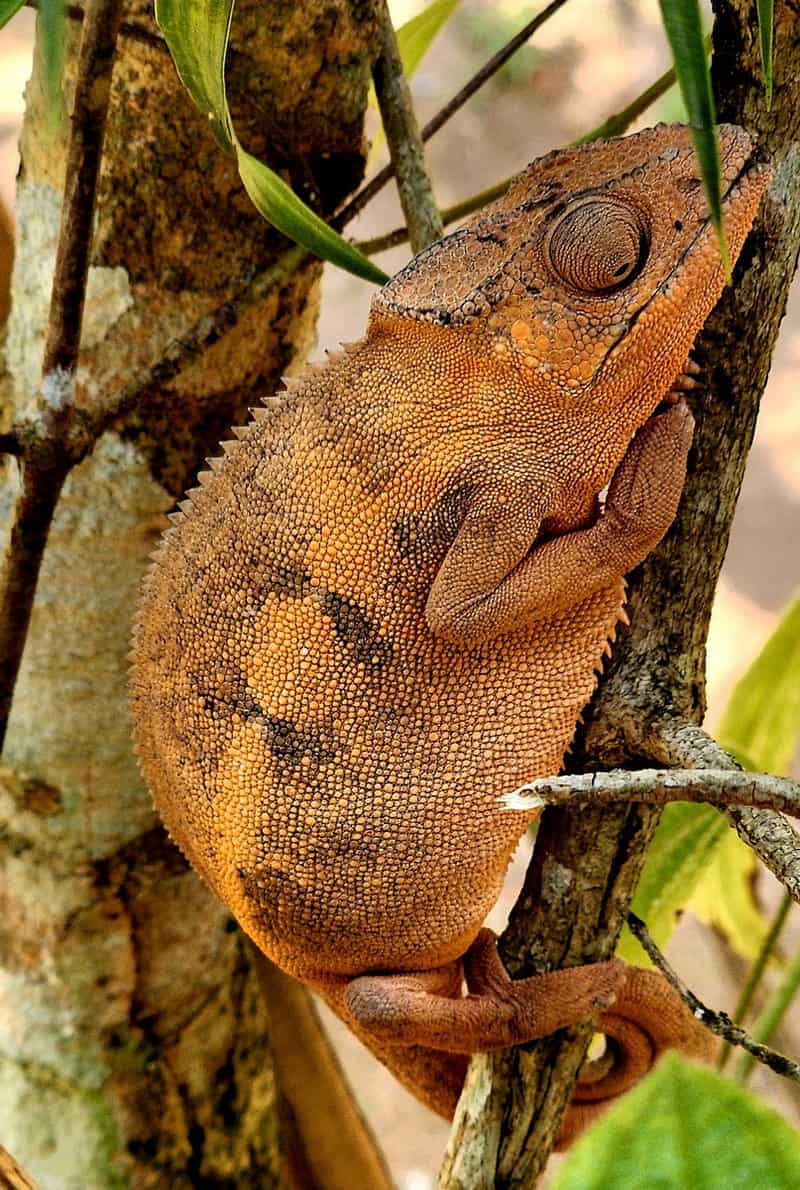 הזיקית המצויה מתאימה את צבעיה לאלו של הסביבה, עד שהמונח "זיקית" הפך לשם נרדף לאדם המשנה את דעותיו תדיר. כך גם הסוג זיקית מדגסקר (שם מדעי: Calumma), שהמינים שלו אנדמיים למדגסקר וחיים על ענפי העצים ביער. הן יכולות להסתוות במהירות, תוך החלפת צבעים ולטפס בשקט, מבלי להיראות הן לטורפים והן לטרפם. אולם זיקיות רבות במדגסקר, אינן מסתוות, אלא דווקא מתהדרות בצבעים מרשימים, בעיקר הזכרים, שנוהגים להרשים את הנקבות, בצבעים עזים, בהתאם ל"עקרון ההכבדה". בין הייתר ראינו את זיקית הכּוֹמֶר (Parson's chameleona ), שמגיעה לאורך של 65 ס"מ, זיקית זו היא בעלת עטרה גדולה ומגושמת המזכירה ברדס של כומר, מה שנתן לה את שמה. במדגסקר התפתחו כמה בעלי חיים גדולים בהרבה מקרוביהם שחיים ביבשה, תופעה שנקראת "ענקות איים" (Insular Gigantism). אחד מהם היה צָב פִּילִי, שקרוביו חיים באיי גלפאגוס (שצורת השריון שלו, העניקה לאיים אלו את שמם).