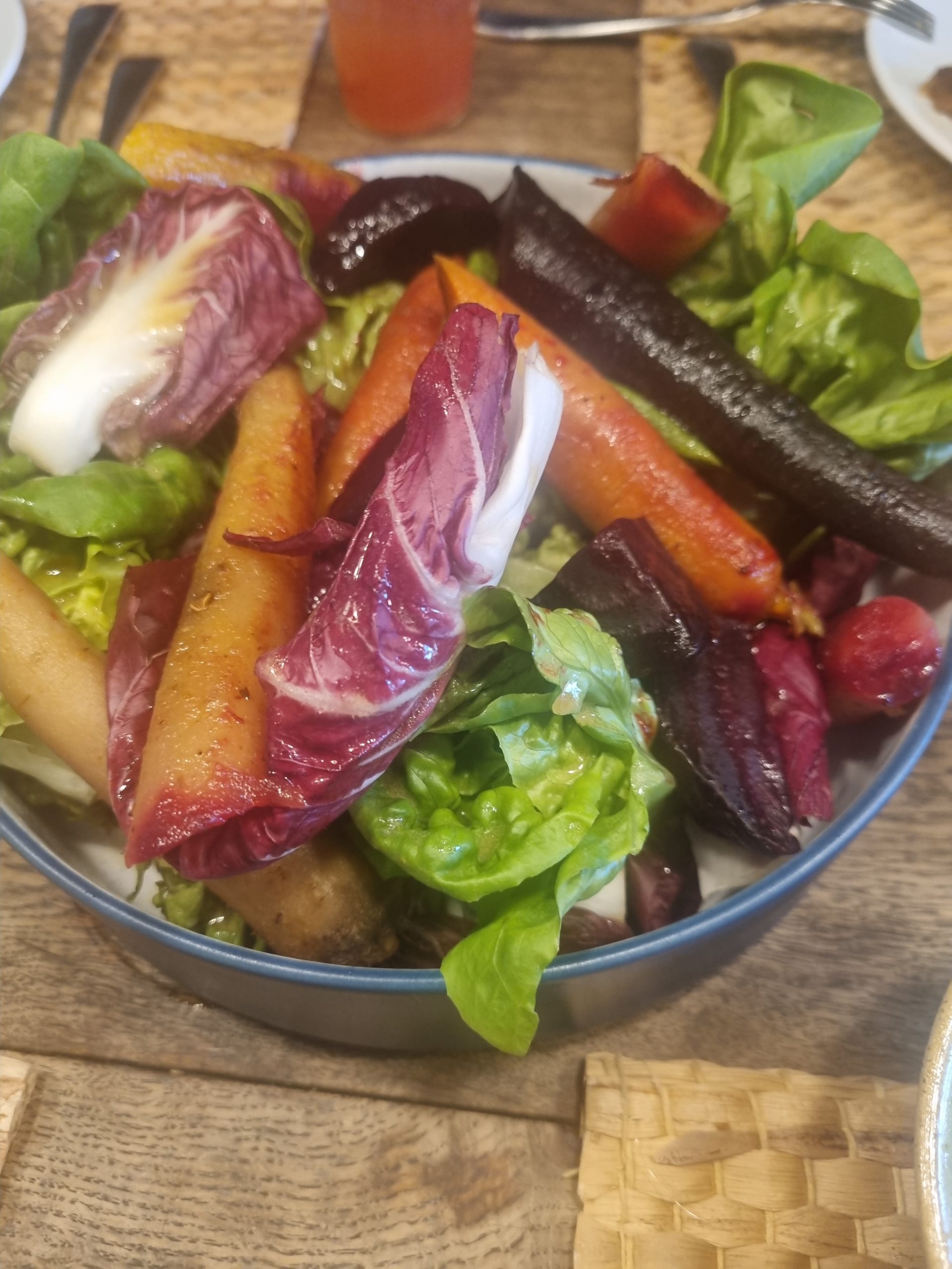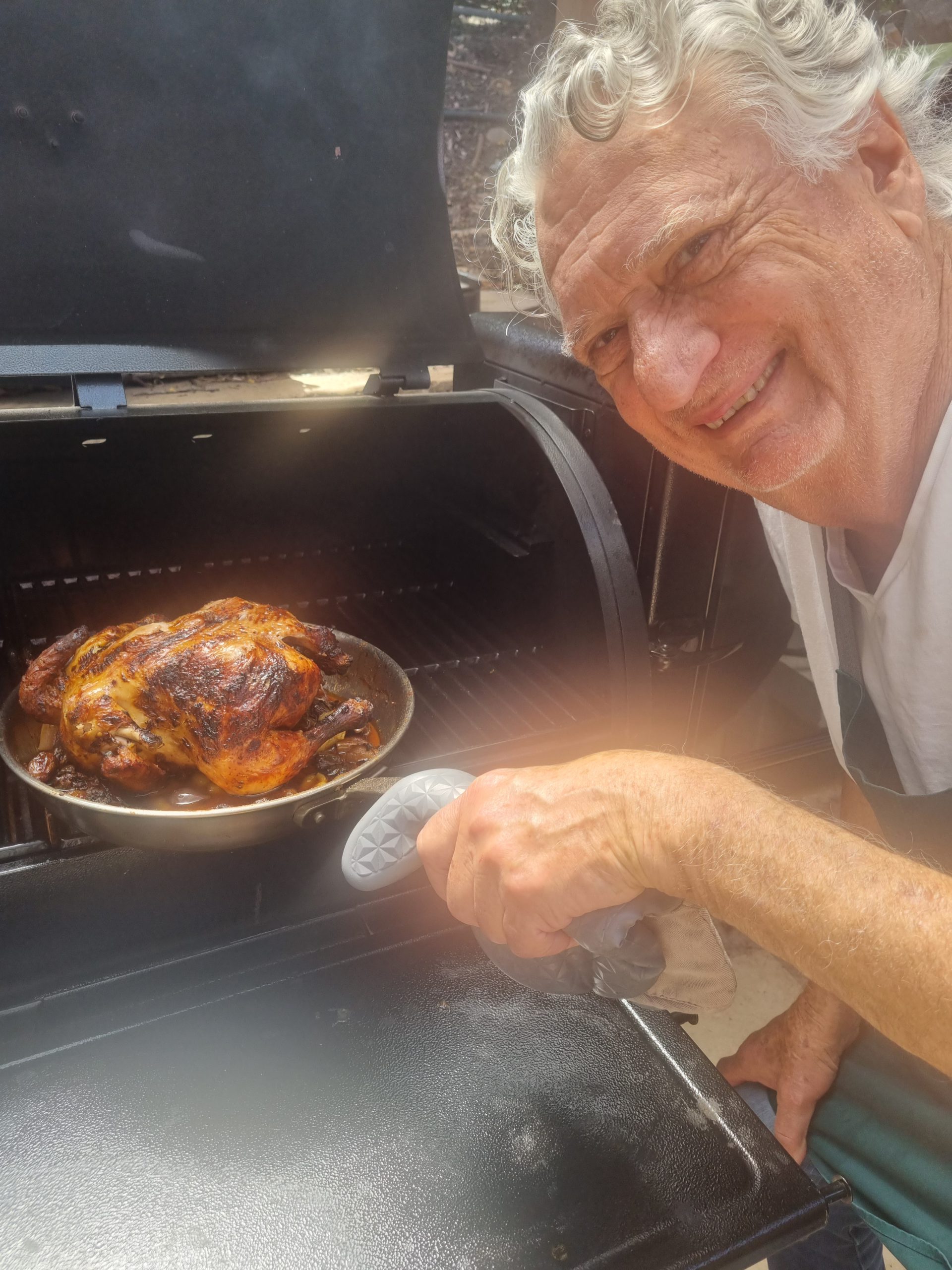 בעוד המנות מסיחות את הדעת השף נעלם ואני מאתרת אותו בחצר האחורית עושה להטים בין המעשנת לגריל הפחמים מפרק לחי של עגל ששהה שבע שעות שאותו יגיש עם פריקה גלילית.