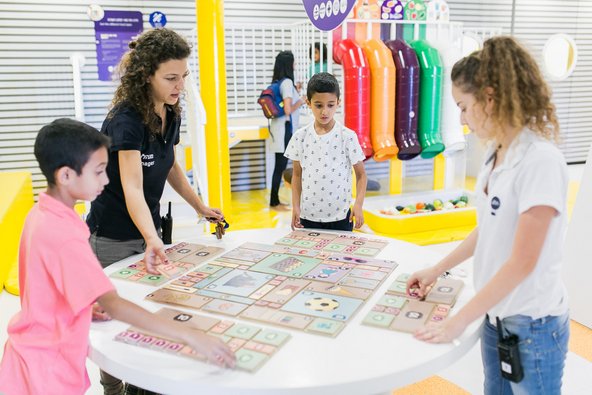 השם לונדע הולם את המקום הזה, שהוא מעין לונה פארק גדול ומלהיב במיוחד של ידע. המוזיאון משתרע על שלוש קומות שבהן שמונה מרחבי ידע מתחומים שונים כשבכל אחד מהם המון הפעלות אינטראקטיביות. בקומת הכניסה, למשל, פגשנו את מרחב המשאבים, שלמרות שמו הלא מאוד מזמין התגלה כאחד הלהיטים של המוזיאון. המרחב מתמקד בשלושה משאבים שראוי שכל אחד ילמד לנהל בתבונה – זמן, תזונה וכסף. ההפעלות שקשורות לזמן מאפשרות לילדים להעריך זמנים ולהבין מה אפשר להספיק לעשות בפרק זמן נתון. למשל, באיזו מהירות מרכיבים פזל או כמה זמן אפשר להיתלות על מתח. ויש גם משחק מחשב נחמד שנוגע לנקודה כאובה אצל כולנו, ובמסגרתו בני המשפחה נדרשים להתארגן בבוקר בתוך עשר דקות ולצאת מהבית. נותר רק לקוות שהילדים יפעלו באותה הזריזות שגילו במשחק גם בחיי היום יום. ההפעלה הפופולרית ביותר במתחם המשאבים היא מסלול הכסף – הילדים מקבלים מעין כרטיס אשראי ונדרשים להרוויח כסף כדי שיוכלו להזין את הכרטיס בכסף ולצאת לקניות. הם יכולים להרוויח כסף באחת משלוש תחנות – קפיצה בטרמפולינה (צריך לקפוץ כמה שיותר במשך דקה, כשכל קפיצה שווה שקל), מיון עוגיות או משחק טריוויה. את הכסף שהילדים הרוויחו הם מפקידים בכספת בבנק ואיתו הם יוצאים לקניות, במטרה לבזבז את כספם בתבונה ולא לחרוג מהתקציב. בקומה העליונה של המוזיאון יש מתחם של אמנות ומוזיקה, ובו כמה מוצגים שמטרתם לחשוף את הילדים למושגים בסיסיים באמנות ובמוזיקה. יש בו, למשל, קיר דיוקנאות עם פורטרטים שיצרו אמנים מפורסמים מזרמים שונים, כמו המונה ליזה של דה וינצ'י או דיוקן עצמי של פרידה קאלו. יש עמדת מחשב שמאפשרת לילדים להצטלם בתוך ציור מפורסם, וכך יכלה הילדה שלנו, למשל, להצטלם בתוך הציור האהוב עליה של ואן גוך, "חדר שינה בארל". ויש גם קיר מוזיקלי שמציג לילדים מושגים מוזיקליים בסיסיים כמו תווים ואוקטבות. במתחם השפות הסמוך אפשר לשחק בתופסת מילים, כשעל הרצפה מוקרנים במהירות ציורים שונים והילדים צריכים לדרוך על המילה המבוקשת, ואז מגלים איך כותבים אותה בשפות שונות. יש במתחם משחקים נוספים מבוססי שפה, כמו ארץ עיר בשפות שונות או בינגו שפות. ויש גם עמדה שבה מקריאים את מגילת העצמאות ולומדים לומר מילים מתוך המגילה בשפות שונות. באותה קומה נמצא גם מתחם "זזים קטנים", שאחת ההפעלות שבו שמלהיבה במיוחד את הילדים היא "אדם נגד חיה" – מסלול ריצה שבו אפשר להתחרות נגד חבר, וגם לראות כמה מהר אתם רצים בהשוואה לחיות כמו צ'יטה או חילזון. מי שמעדיף פעילות רגועה יותר ימצא קיר מגנטים ענק שבו אפשר לעצב את בית החלומות. במתחם הזה יש גם אזור פעילויות מרופד במזרנים לקטנטנים עד גיל 4, מעין ג'ימבורי מעוצב ונעים שבו הם יכולים להשתעשע בזמן שהאחים הגדולים עסוקים בתחנות המוזיאון השונות. בקומה התחתונה של המוזיאון נמצא המתחם התיאטרלי שמתאים במיוחד לילדים שמגיעים עם כמה אחים או חברים. כאן הילדים יכולים להתחפש, להרכיב תפאורה, לעמוד על הבמה ולהופיע. ומי שלא רוצה לעמוד בקדמת הבמה יכול ללכת לעמדת הבמאי, לצלם, ליצור אפקטים ולשלוט בתאורה. בחצר הצמודה למתחם התיאטרלי נמצאת אחת האטרקציות הכי מלהיבות במוזיאון. זהו מתחם סולמות ונחשים ענק, שמתאים לכל הילדים שתמיד דמיינו כמה כיף זה יהיה להיכנס לתוך המשחק, לטפס ולגלוש. כאן הילדים הופכים לחיילים ולוח המשחק הוא החצר משופעת הגבעות שעליהן מצוירות משבצות ענק ממוספרות. המטרה היא להגיע למשבצת האחרונה ובדרך הילדים מטפסים על סולמות ברמת אתגר שונות וגולשים במגלשות. ומכיוון שחושבים כאן על כל פרט, יש בחצר מסלול נוסף המונגש לבעלי מוגבלויות. כדי שהילדים ייהנו באמת מחדוות הגילוי, הם נדרשים לחלוץ נעליים בכניסה למוזיאון. ברגע שהם חופשיים מנעליים ומתרוצצים ברגליים יחפות על רצפת המוזיאון, הם כבר מרגישים בנוח לספוג חוויות חדשות ומבינים שבמוזיאון הזה לא רק שלא כתוב "נא לא לגעת", אלא מותר להסתובב בחופשיות ולחוות את המוזיאון עם כל החושים. לכ