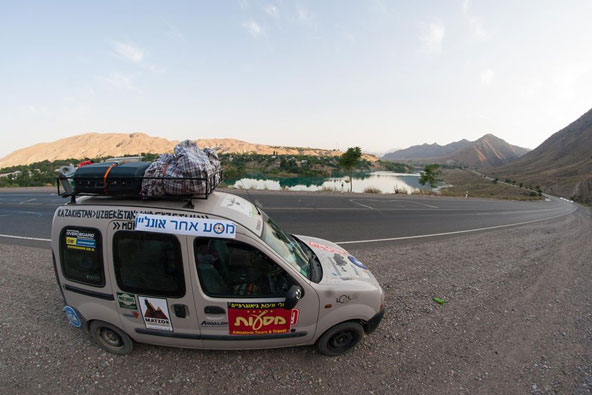 נתקענו באזור בינלאומי על כביש באורך 800 מטר, בין שתי עמדות גבול, ללא יכולת לזוז. את הלילה העברנו ליד החומה של הצד האוזבקי באוהל. אין כמו לישון בשום מקום, ליד מגדלי שמירה, באזור המפורז בין שתי מדינות… בבוקר, אחרי תחנונים, האוזבקים הסכימו לאפשר לנו לחצות את המדינה חזרה לטשקנט ולצאת בדרך הגבול לקזחסטן. לי זה התאים, אבל תום התניע את השגרירות הישראלית בקזחסטן, שמטפלת גם בענייני ישראלים בקירגיזסטן. בתוך שעה הובטח לסדר לנו משהו כדי שנוכל להיכנס לקירגיזסטן – פתרון הרבה יותר טוב. פתחנו מילון כדי לחגוג.