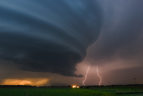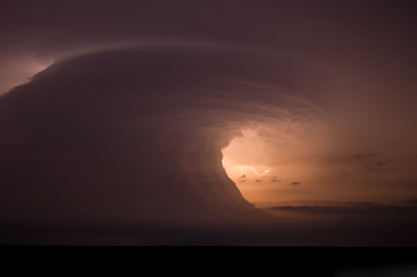צונאמי בשמים: ענני סערה כמו גל ענק מעל הברק שבאופק | צילום: מייק הולינגסהאד, extremeinstability.com