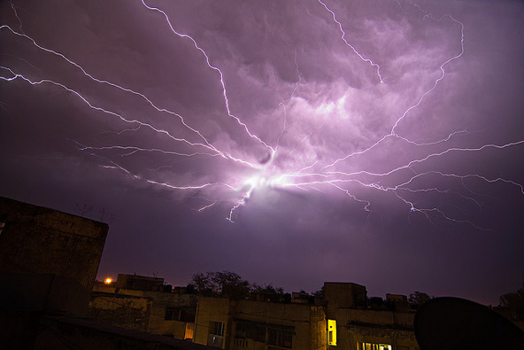 בחורף המתון שלנו רבים הימים הבהירים, עם שמש נעימה ושמים כחולים. מדי פעם מתרחשות סערות חריגות, שמורידות עשרות ואפילו יותר ממאה מיליטרים של גשם בזמן קצר ומפזרות מעטה לבן של שלג בראשי ההרים בצפון ובהרי ירושלים. ב-2013, כשבירושלים נערם שלג לגובה של 50-40 ס"מ העיר שותקה כליל למשך כמה ימים. אבל יש מקומות בעולם שבהם מזג האוויר דרמטי בהרבה וכשהוא "משתגע" מדובר בטירוף של ממש… ליקטנו כאן תמונות של סערות מרחבי העולם ושל התוצאות שלהן. שכשמסתכלים על הצילומים הללו מבינים עד כמה הפכפך יכול להיות הטבע ועד כמה עוצמתי. ברקים "רעמים וברקים בליל חורף קר / לא נשמעים תמיד אותו הדבר / ברקים ורעמים, רעמים וברקים / לפעמים קרובים ולפעמים רחוקים" (יונתן גפן מתוך "הכבש השישה עשר") סערת ברקים דרמטית במיוחד