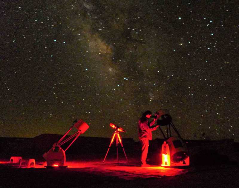 – כלל ידוע הוא כי הצופה בכוכבים צועד (או במקרה זה – שוכב) על קיבתו, ואין כמו נשנושים ואוכל טוב כדי להעביר בנעימים את השעות הארוכות של הצפייה בכוכבים, כמו גם שתיה חמה לשעות הקרירות של הלילה המדברי. אל תשכחו להצטייד גם בשקיות אשפה על מנת לפנות את הפסולת אחריכם, וכמובן הרבה מים. לחיסכון במקום ובמשקל ניתן להצטייד בבקבוק הטיולים הגמיש של חברת שורש (זו של הסנדלים המיתולוגיים) שכשהוא מתרוקן ניתן פשוט לקפלו ולתחוב לתיק או אפילו לכיס מבלי שיתפוס מקום עד המילוי הבא, ומהווה פיתרון נהדר גם בעת טרקים בשטח.