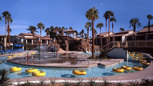 Omni Rancho Las Palmas, פאלם ספרינגס, קליפורניה אזור פאלם ספרינגס נהנה משמש חמימה לאורך כל השנה, ובמלון Omni Rancho Las Palmas מנצלים היטב את הנתון הזה ומציעים לאורחים מתחם בריכה מקסים שמהווה מפלט מושלם מהחום, ובו בריכה עם חוף חולי צמוד, נהר אבובים, שתי מגלשות מים מעוצבות, אזור שעשועי מים וג'קוזי. כדי להשלים את תחושת החופשה, תוכלו ללקבל עד למיטת השיזוף המבורגרים וקוקטיילים טרופיים עם שמשיה מהמסעדה הצמודה. למבוגרים שמעדיפים קצת שקט יש בריכה משלהם המעוצבת בסגנון טרופי ובריכה נוספת בספא של המלון. מלבד זאת יש במלון חדר כושר, ספא, מגרש גולף, כמה בוטיקים ומסעדות. איפה? 41000 Bob Hope Dr, Rancho Mirage, CA להשוואת מחירים למלון זה לחצו כאן >>  נהר אבובים ב-Omni Rancho Las Palmas | צילום: Omni Rancho Las Palmas © בתמונה הפותחת: מלון Disney beach Club Resort בשעת בוקר מוקדמת | צילום: Scott Thomas |