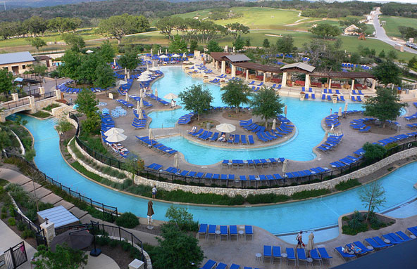 JW Marriott San Antonio, סן אנטוניו, טקסס טקסס אמנם לא מככבת על מפת התיירות של התייר הישראלי, אבל הבריכה של מלון JW Marriott San Antonio Hill Country Resort & Spa היא אחת מהיפות בארצות הברית כך שהיה מתבקש להכניס אותה לרשימה. המלון שוכן בלב אזור הגבעות של טקסס והנוף הירוק נשקף מכל פינה, כך שאפשר לחשוב שנהר האבובים שמקיף את פארק המים של המלון הוא נהר אמתי בחיק הטבע. בנוסף לנהר יש במתחם בריכות ושתי מגלשות מים, בריכת ילדים עם מזרקות מים בצורת חיות ושלוש מגלשות קטנות וגם בריכת אינסוף למבוגרים בלבד. עוד במלון: מגרש גולף, ספא ושבע מסעדות. איפה? 23808 Resort Pkwy, San Antonio להשוואת מחירים למלון זה לחצו כאן>>  הבריכות של מלון JW Marriott San Antonio מתפתלות כמו נהר בנוף הירוק | צילום: Heather Cowper