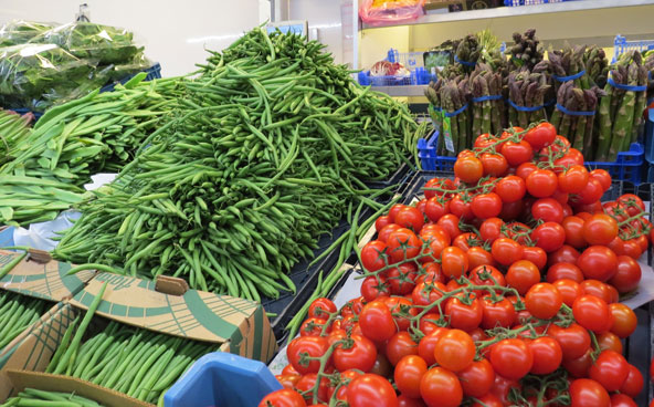 דוכן ירקות בשוק השבועי המתקיים בכיכר שטלאן | צילום: רותם בר כהן