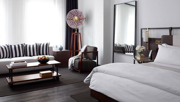Refinery Hotel בלב אזור האופנה (Garment District) של ניו יורק, במגדל מראשית המאה העשרים, ששימש בעבר כמפעל לכובעים, נמצא מלון בוטיק עם אווירה היפסטרית עדכנית. העיצוב מתכתב עם הייעוד הקודם של הבניין ועם האזור, שפעם היה עמוס במתפרות ובבתי מלאכה דחוסים, והיום הוא מאכלס סדנאות וחדרי תצוגה של מעצבי אופנה צעירים וטרנדיים. בחדרים יש תקרות גבוהות, רצפות עץ ועבודות אמנות מקוריות, מחלקם אפשר לראות את האמפייר סטייט בילדינג. על הגג יש בר עם מרפסת שמשקיפה על כל הסביבה, בבר שבכניסה מנגנים בערבים מוזיקת ג'אז חיה ובקומת המרתף יש גלריה גדולה שמתקיימים בה אירועים הקשורים לאמנות ולאופנה. איפה? 63W 38th Street להשוואת מחירים במלון זה לחצו כאן >> חדר במלון Refinery. ממפעל לכוכבעים למלון בוטיק יוקרתי | צילום: Refinery Hotel ©