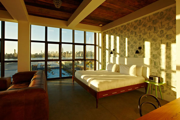 Wythe Hotel עבור רבים ניו יורק מתחילה ונגמרת במנהטן, אבל מי שמכיר את ברוקלין ואת ההתפתחות האדירה שעברה עליה בעשור האחרון, לא ימהר לפסול את מלון הבוטיק המצוין הזה. הוא נמצא על שפת הנהר בשכונת ויליאמסבורג, במבנה תעשייתי משופץ מ-1901 ומהקומות העליונות שלו יש תצפית נפלאה על קו הרקיע של מנהטן. העיצוב משלב בין מראה תעשייתי לעכשווי, כשללבנים החשופות נוספו קירות מזכוכית ואלומיניום. העיצוב התעשייתי ממשיך גם לחדרים, עם תקרות עץ גבוהות ומיטות בעבודת יד מעץ ממוחזר. בחלק מהחדרים יש קירות של לבנים חשופות, באחרים הקירות מעוטרים בטפטים מעוצבים, ובכולם יש חלונות ענקיים. מחדרי הלופט שבקומות השביעית והשמינית נשקף נוף מופלא של גורדי השחקים של מנהטן. יש כאן בר ומסעדה הפתוחה עד חצות וחובבי הקולנוע ישמחו לדעת שבכל שנה המלון מארח את פסטיבל הסרטים של ברוקלין. איפה? Wythe Ave 80, ויליאמסבורג, אתר אינטרנט חדר-לופט במלון Wythe עם נוף נפלא לקו הרקיע של מנהטן
